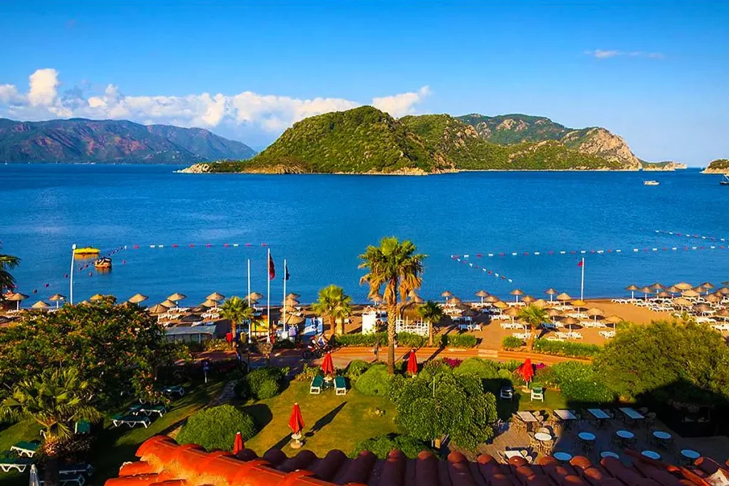 مارماریس شهری توریستی در جنوب غربی ترکیه است که در استان موغله و در محل تلاقی دریای اژه و دریای مدیترانه قرار دارد. این موقعیت جغرافیایی باعث شده مارماریس یکی از زیباترین سواحل ترکیه را داشته باشد و به بهشتی برای دوستداران دریا، تفریحات آبی و طبیعت تبدیل شود. کوههای سرسبز اطراف شهر، چشماندازی تماشایی در کنار آبهای شفاف ایجاد کردهاند و فضایی آرام اما پرنشاط را شکل دادهاند. مارماریس علاوه بر سواحل، شبهای زنده و بازارهای محلی پرجنبوجوشی هم دارد. از مهمترین جاذبههای این شهر میتوان به قلعه مارماریس (Marmaris Castle) اشاره کرد که تاریخ آن به دوران باستان بازمیگردد. جاذبه دیگر ساحل ایچملر (Icmeler Beach) است که بهخاطر آب زلال و فضای آرام، شهرت زیادی دارد.