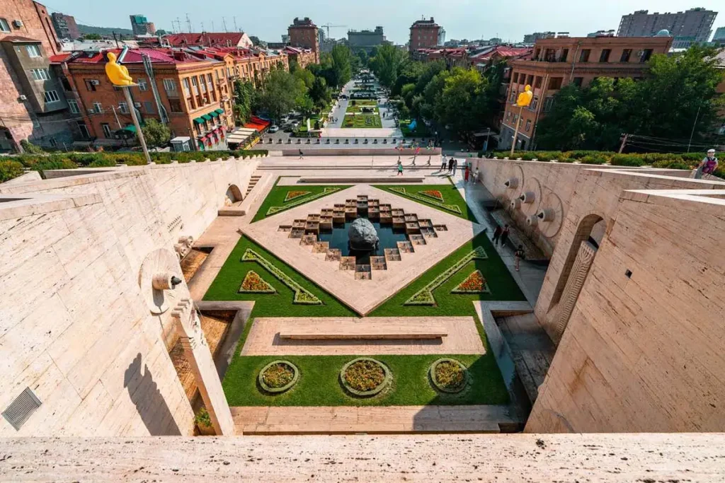 ایروان، پایتخت ارمنستان، در غرب کشور و در نزدیکی مرز با ترکیه قرار دارد. این شهر در دره‌ای میان کوه‌های آرارات و رود هرازدان واقع شده و چشم‌اندازهای طبیعی اطراف آن، جلوه‌ای خاص به شهر بخشیده است. ایروان شهری پرجنب‌وجوش و فرهنگی بوده که مرکز اقتصاد، هنر و تاریخ کشور محسوب می‌شود. میدان جمهوری، قلب ایروان، با ساختمان‌های تاریخی، فواره‌های موزیکال و فضای زنده خود، محلی عالی برای آغاز گشت‌وگذار است. خیابان‌های این شهر پر از کافه‌های دلنشین، رستوران‌های محلی، بازارهای صنایع دستی و موزه‌های متنوع می‌باشد.
